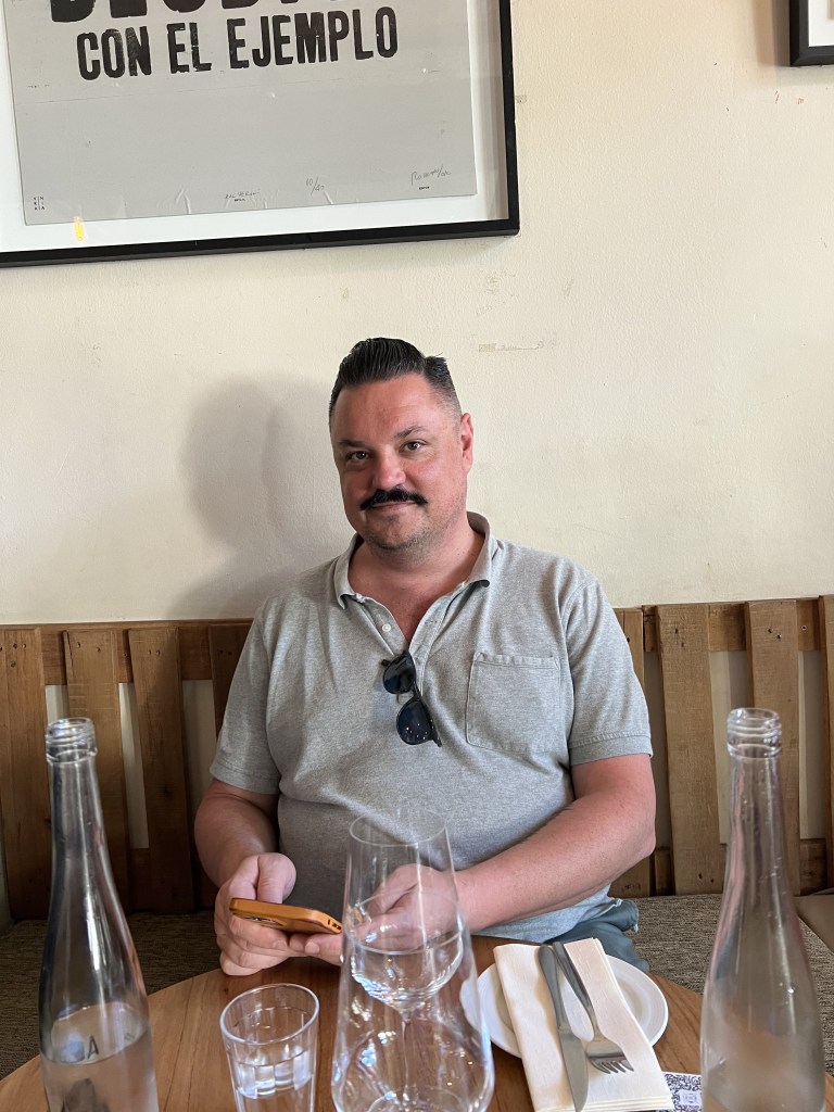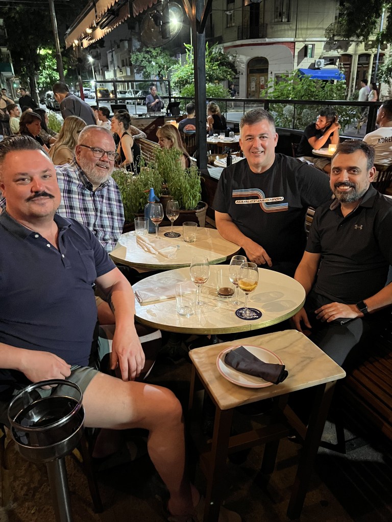 We arrive, and Chef and his friend are already enjoying a drink on the sidewalk while waiting for our table. They had taken our idea, and stopped at the bar we wanted to go to and had a pre-dinner drink.
