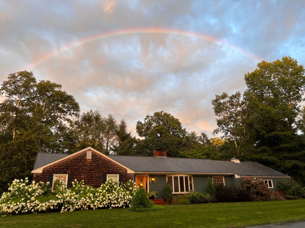 Then after an amazing thunderstorm there is a rainbow over the water.