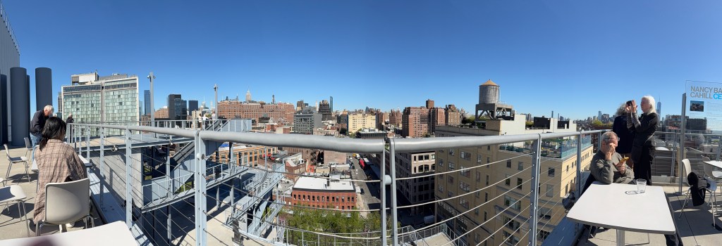 When we got to Hudson, we hailed a cab and headed up town to the Whitney Museum of American Art.  Neither Adam, nor myself had ever been and we thought it would be a great way to spend the afternoon.  We started on the top floor with, as we were instructed to do, with a stop at the coffee shop, for a soda water.  We grabbed a table outside on the patio to enjoy the view of the city scape.
