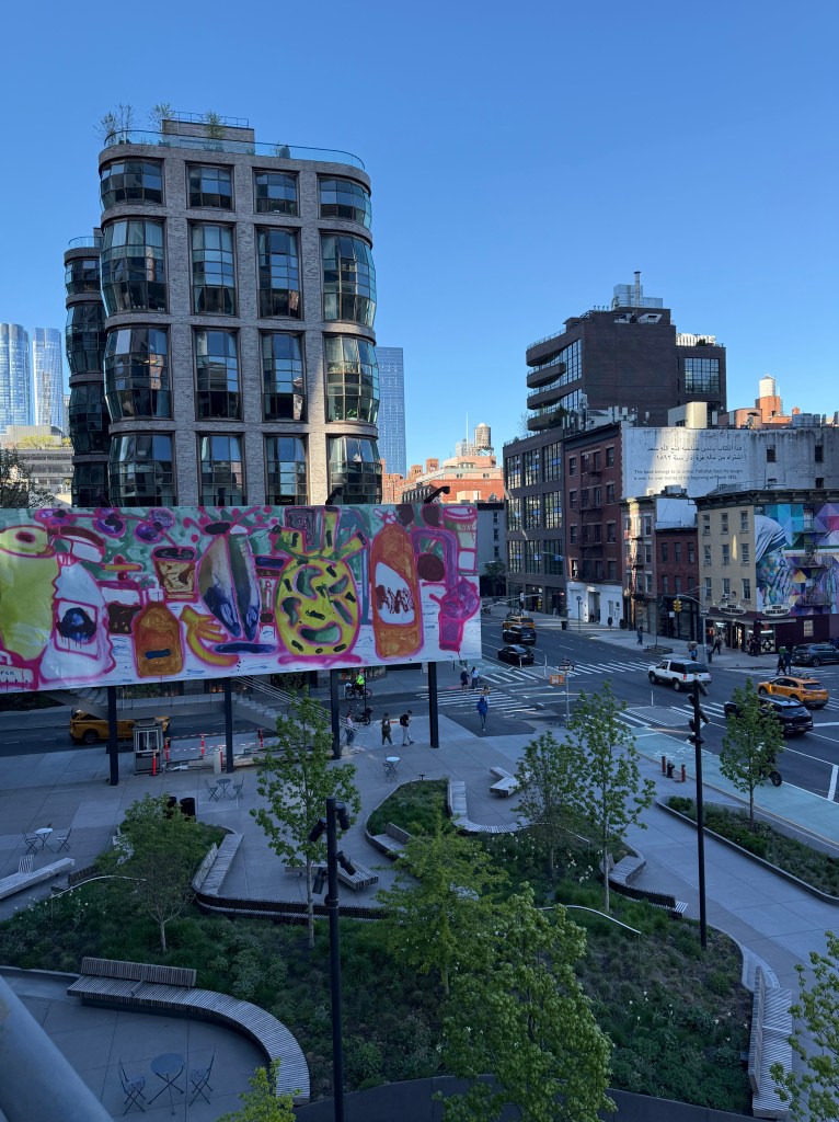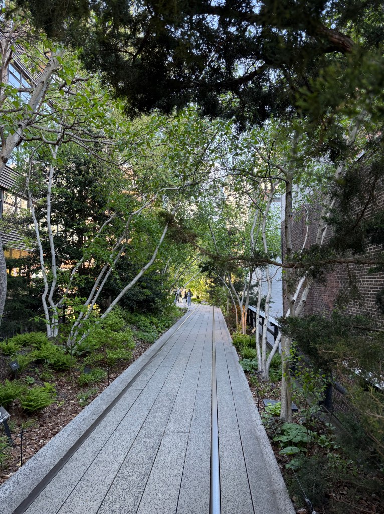 After the Whitney, we walked The High Line.  For those of you not familiar, NYC took an old elevated railway line on the west side of the city and turned it a park, that wanders up the west side.  It’s full of plants and art, and many times you are walking by buildings that you can see into.  There are places to sit and in the summer, people sell wares and food etc along the way.  It’s a great way to get from The Village north through Chelsea.