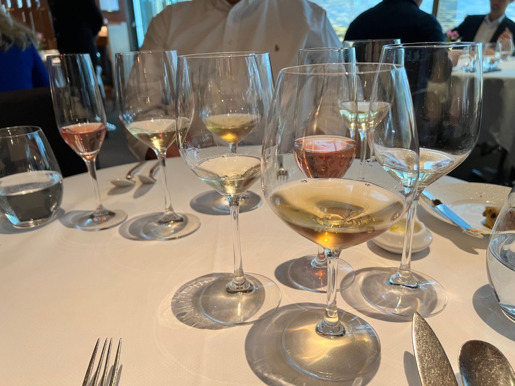 New glasses dropped at the table.  They left the old ones for a while, so for about 30 minutes it looked as though we’d had four glasses of wine each.